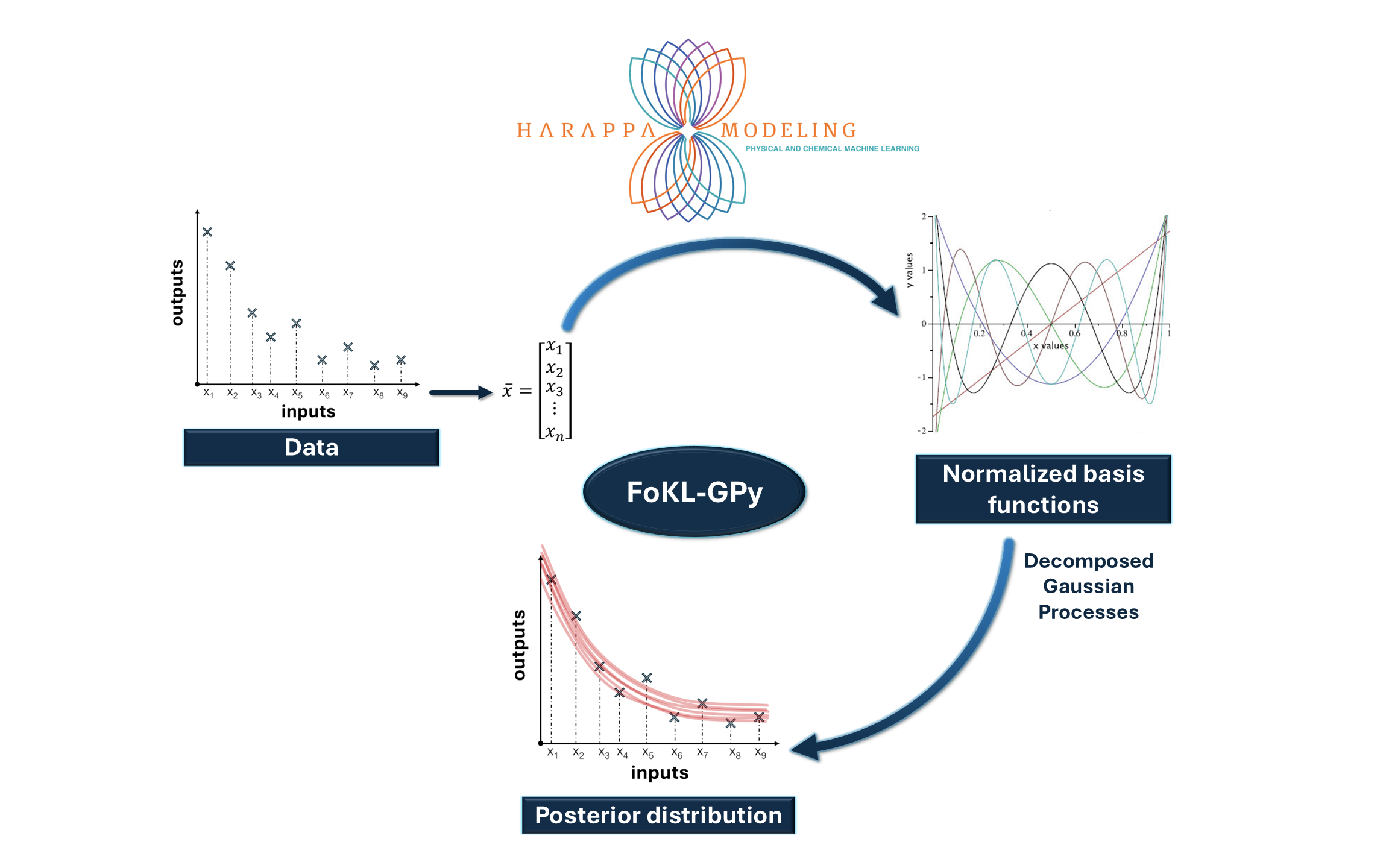 This diagram illustrates the workflow of the FoKL-GPy framework — a novel approach that leverages Karhunen–Loève (KL)